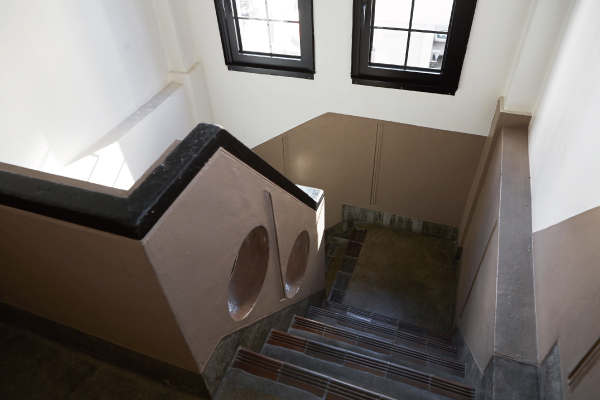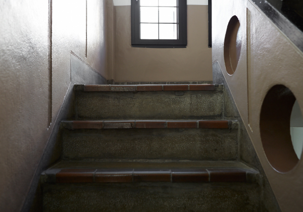 3階と4階を室内でつなぐ古い木製の内階段、石造りの外階段など昭和初期の個性的な建築様式が 当時のままので姿で残されています。