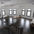 部屋全体を囲むように作られた大きな円形窓と 4階の小さな天窓から入る美しい自然光も当時の建築の大きな 特徴でもあります。